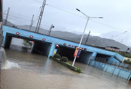 經(jīng)過現(xiàn)場察看,由于短時間降雨量太大,龍津河水位暴漲高于通道出口頂標(biāo)高,河水倒灌至下穿通道導(dǎo)致交通中斷,下穿通道水泵房三臺水泵全部啟動抽水也無法滿足排水要求。公司防汛小組到達(dá)現(xiàn)場后,連夜組織人員拉好警戒線,設(shè)置警示標(biāo)志,防止車輛進(jìn)入下穿通道,并調(diào)度4輛應(yīng)急車輛及時排水并清洗路面;同時,提前與鐵路部門、交警部門聯(lián)系,暫時封閉該段線路。經(jīng)過6小時的不斷抽水,路面已基本暢通,搶險過程未發(fā)生任何險情和人員傷亡。