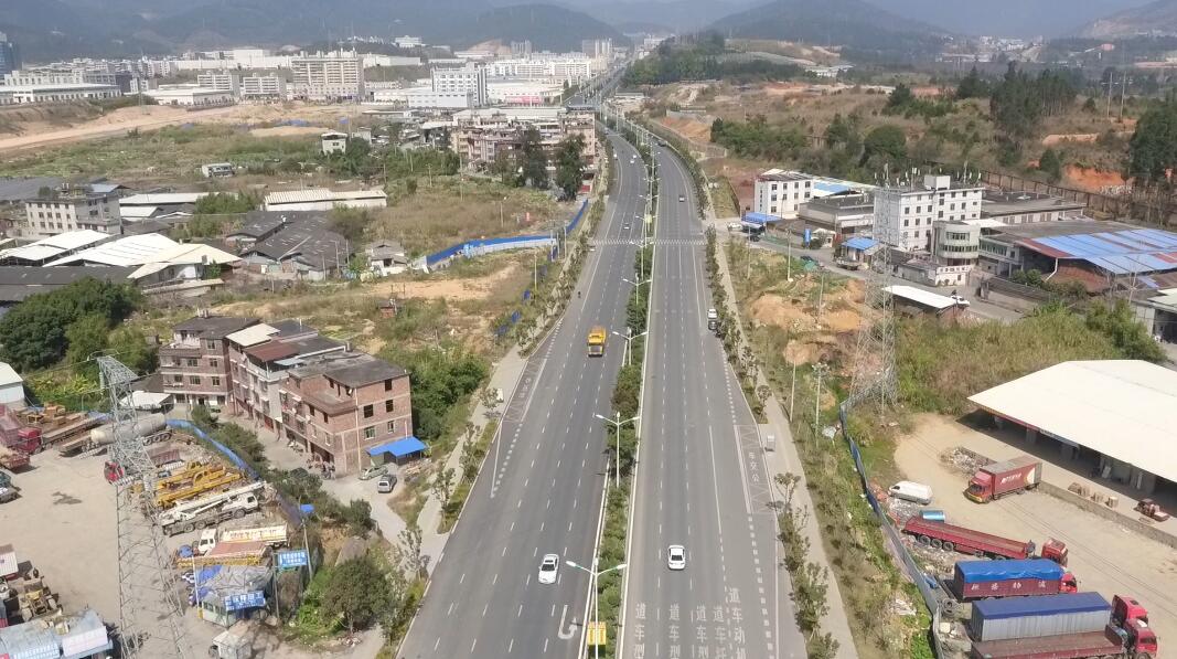 項目起點(diǎn)與青竹路相接,終點(diǎn)與已建成的北三環(huán)路(福建龍州工業(yè)園區(qū)段)相連,全長2700米,寬40米,概算投資20640萬元,分兩個道路施工標(biāo)段和一個高邊坡防護(hù)施工標(biāo),于2013年10月8日開工建設(shè),2015年竣工通車。