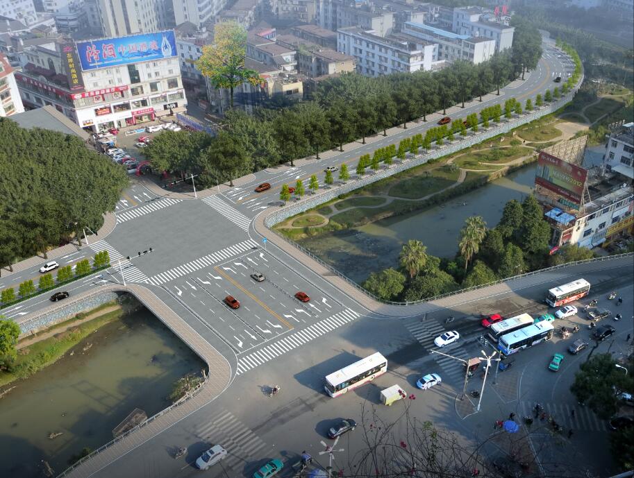 “三橋—路”改造工程:為解決龍川路及羅橋、西興橋、九—橋十字交叉口道路擁堵問題,經(jīng)市委、市政府研究決定,對龍川路(羅橋-九—橋)段道路及橋梁進(jìn)行改造、拓寬,路線起于現(xiàn)狀北環(huán)西路(羅橋),終點接至九—北路(九—橋),全長1.341K田。改造內(nèi)容包括:西興橋兩側(cè)各加寬12米、九—橋兩側(cè)各加寬8米作為人行及非機(jī)動車道,原人行道改造為機(jī)動車道;人民醫(yī)院背后橫跨龍津河新建—座約4.5米寬人行天橋;原龍川路擇路段增加—機(jī)動車道,加寬路段共計約0.7公里。項目總投資約1.25億元。
