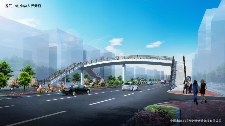 龍門中心小學(xué)人行天橋位于羅龍西路龍門中心小學(xué)西側(cè)約80米,主梁采用鋼箱型連續(xù)梁,腹板為圓弧形,主梁全長33.8米,寬4米。梯道坡度1:2,長16.9米、寬米,中間設(shè)置緩步平臺??偼顿Y約400萬元。