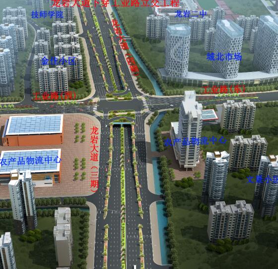 龍巖大道工業(yè)路下穿通道項(xiàng)目位于龍巖大道與工業(yè)路交叉口,為現(xiàn)狀龍巖大道三期道路上設(shè)置下穿通道,起始于規(guī)劃支路農(nóng)產(chǎn)品物流配送中心路口,終止于龍巖大道四期龍巖第一技師學(xué)院東側(cè),全長(zhǎng)383米,其中框架涵長(zhǎng)度80米,U型槽長(zhǎng)度303米,地道凈寬2×13米,雙向六車道。主通道兩側(cè)設(shè)置兩道南北向人行地下通道,人行通道斷面型式:5×3.5米,主通道長(zhǎng)124米,梯道長(zhǎng)128米,總投資約2億元。