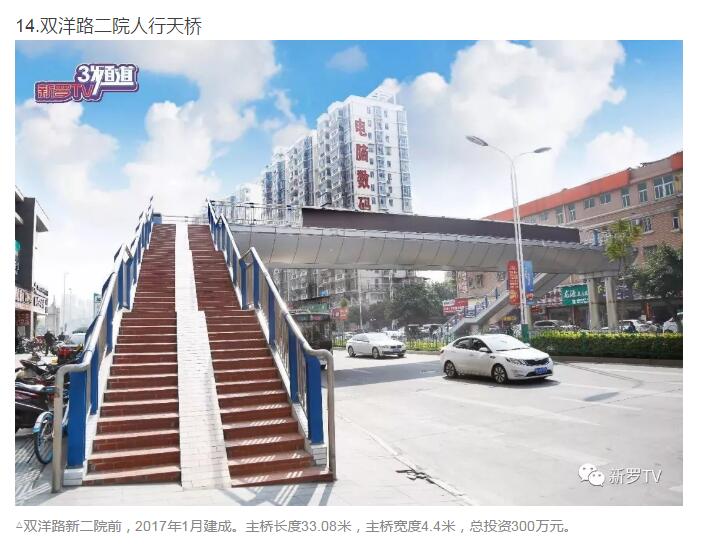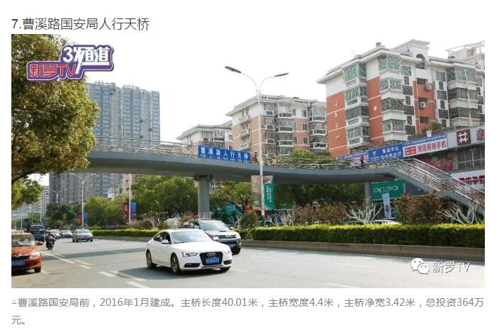 年來(lái),市委、市政府加大市政基礎(chǔ)設(shè)施投入,大力推進(jìn)人行天橋建設(shè)。截止2017年底,中心城市共興建20余座人行天橋。