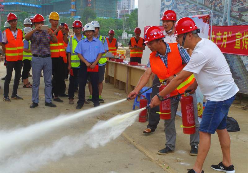 6月16日是“全國(guó)安全生產(chǎn)宣傳咨詢(xún)?nèi)铡?。?dāng)日,龍巖城發(fā)集團(tuán)與市城投公司組織人員分別前往中心城區(qū)華蓮西路一期、火車(chē)站站前高架橋、龍巖大橋高架橋、龍巖大道四期下穿工業(yè)路通道等四個(gè)項(xiàng)目工地,開(kāi)展安全生產(chǎn)宣傳活動(dòng)。圖為工作人員現(xiàn)場(chǎng)指導(dǎo)工人使用滅火器。