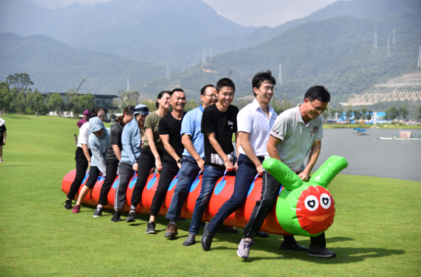 與傳統(tǒng)運(yùn)動(dòng)會(huì)不同,此次趣味運(yùn)動(dòng)會(huì)環(huán)節(jié)豐富、趣味十足、合作性強(qiáng),涵蓋了旋轉(zhuǎn)接水、毛毛蟲(chóng)、跳一跳三個(gè)項(xiàng)目環(huán)節(jié)。所有參賽人員按隨機(jī)性破冰重組,分為四隊(duì),每個(gè)項(xiàng)目都是以多人合作為比賽模式,不但考驗(yàn)了參賽者的協(xié)調(diào)能力和身體素質(zhì),更考驗(yàn)了團(tuán)隊(duì)合作精神。賽場(chǎng)上,隊(duì)員們笑容滿臉,精力充沛,全力投入,場(chǎng)上時(shí)時(shí)爆出掌聲和拼搏的歡呼聲,真正賽出風(fēng)采,賽出凝聚力。