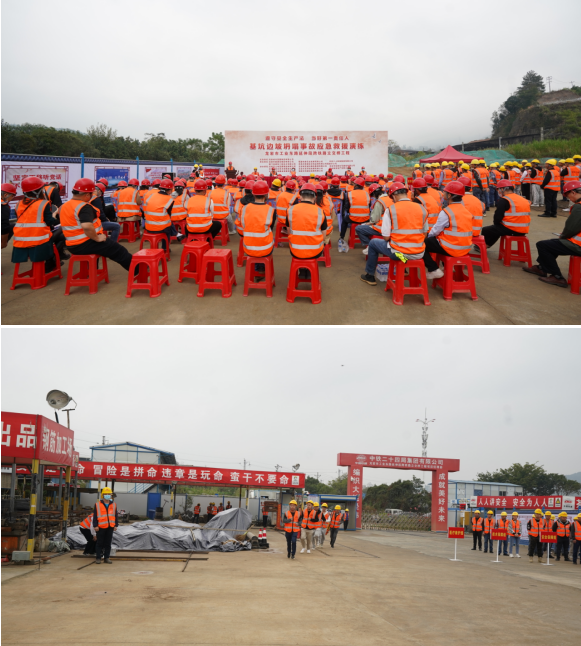 為進一步貫徹落實黨的二十大精神,增強員工和現場施工工人安全意識,提高自救能力和處理突發(fā)事件的應對能力,11月16日上午城發(fā)集團,市政集團、福鐵實業(yè)、中鐵二十四局、廈門高誠信、南昌華路監(jiān)理福建分公司聯合承辦“黨建+基坑邊坡坍塌事故應急救援演練龍巖市工業(yè)東路延伸段跨鐵路立交橋工程項目現場舉行,各單位相關領導以及工程、質安人員參加了現場觀摩。